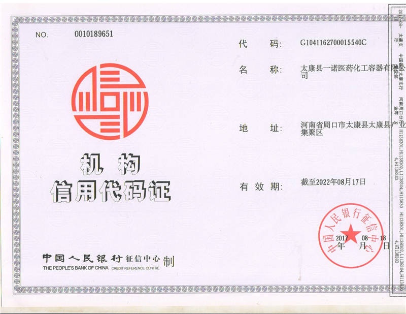 > 一諾機構信用代碼證 > 詳情